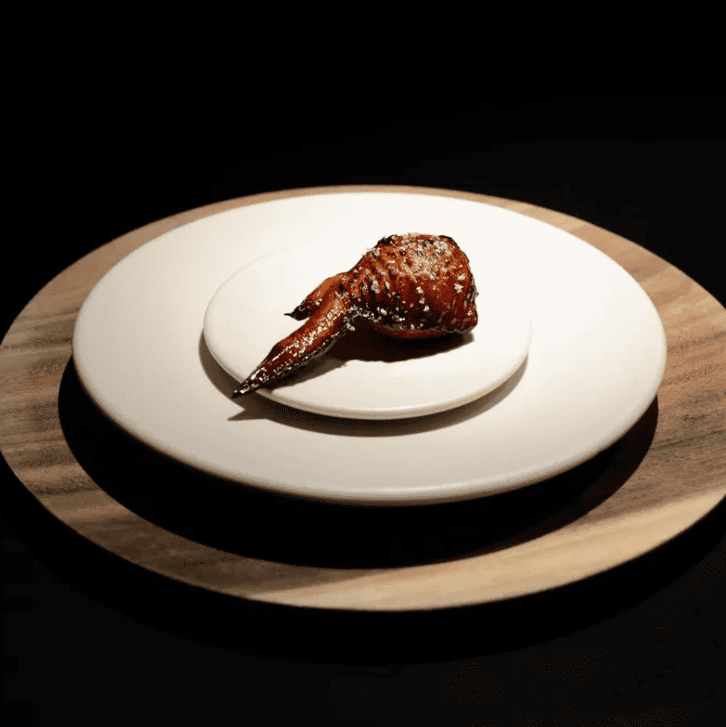 歴史ある街に佇む二階建ての邸宅を利用した「Small Dinner Club」は、ミステリアスで魅力的な雰囲気を放つレストラン。黒を基調とした薄暗いインテリアが非日常感を演出します。シェフ・サリーンは「タイ料理を分解し、問い直し、再構築する」と語り、常識にとらわれない発想で料理を生み出します。甘味料理に塩気を、塩味料理に旬の果物などの甘味を取り入れるなど、知的で芸術的に仕上げられた革新的な一皿がここで味わえます。