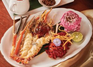 バンコクで上質なタイ料理を味わうなら「バーンカニタ」。タイの伝統美が漂うアンティーク調の店内で、落ち着いた時間を過ごせます。厳選された食材を使い、同じタイ料理でも屋台とは一線を画す繊細な味わいが魅力。海老や魚介はぷりぷりで、ヤム・ソムオーやグリーンカレー、プー・パッポンガリーなどの名物もおすすめ。食後には上品なココナッツアイスやカオニャオ・マムアンで締めを。特別な日にも相応しい名店です。